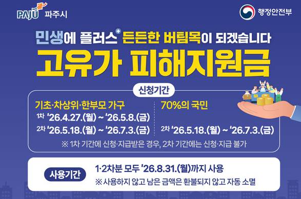 지급된 지원금은 2026년 8월 31일까지 모두 사용해야 합니다. 사용하지 않고 남은 잔액은 환불되지 않고 국가로 자동 회수되므로 반드시 기한 내에 동네 마트, 주유소, 음식점 등에서 사용하시기 바랍니다.