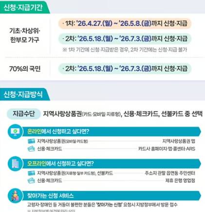 스마트폰 사용이 익숙하지 않다면 오프라인 방문도 가능합니다. 신분증을 지참하고 주소지 관할 읍면동 주민센터나 제휴 은행 영업점을 방문하시면 됩니다. 거동이 불편한 고령자나 장애인을 위한 ‘찾아가는 신청 서비스’도 운영 중이니 적극 활용하세요.